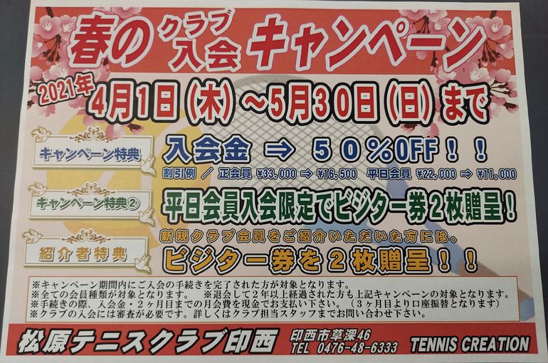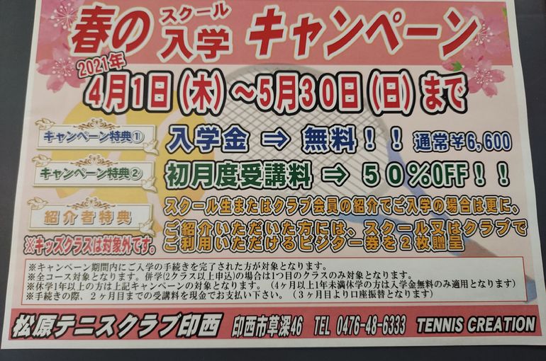 4月1日より、スクールの入学キャンペーンとクラブの入会キャンペーンが始まりました!