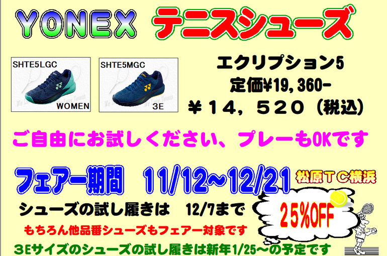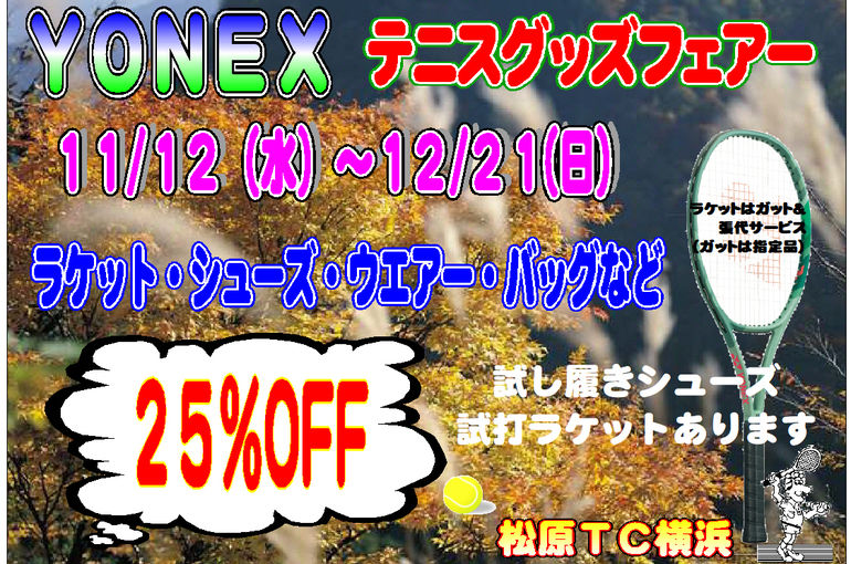 YONEXテニスグッズフェアー開催!期間は11/12~12/21まで!