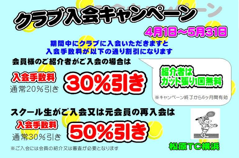 クラブ入会キャンペーン開催 | 横浜ブログ | 横浜でテニススクールをお探しの方へ新しい情報をブログから発信します